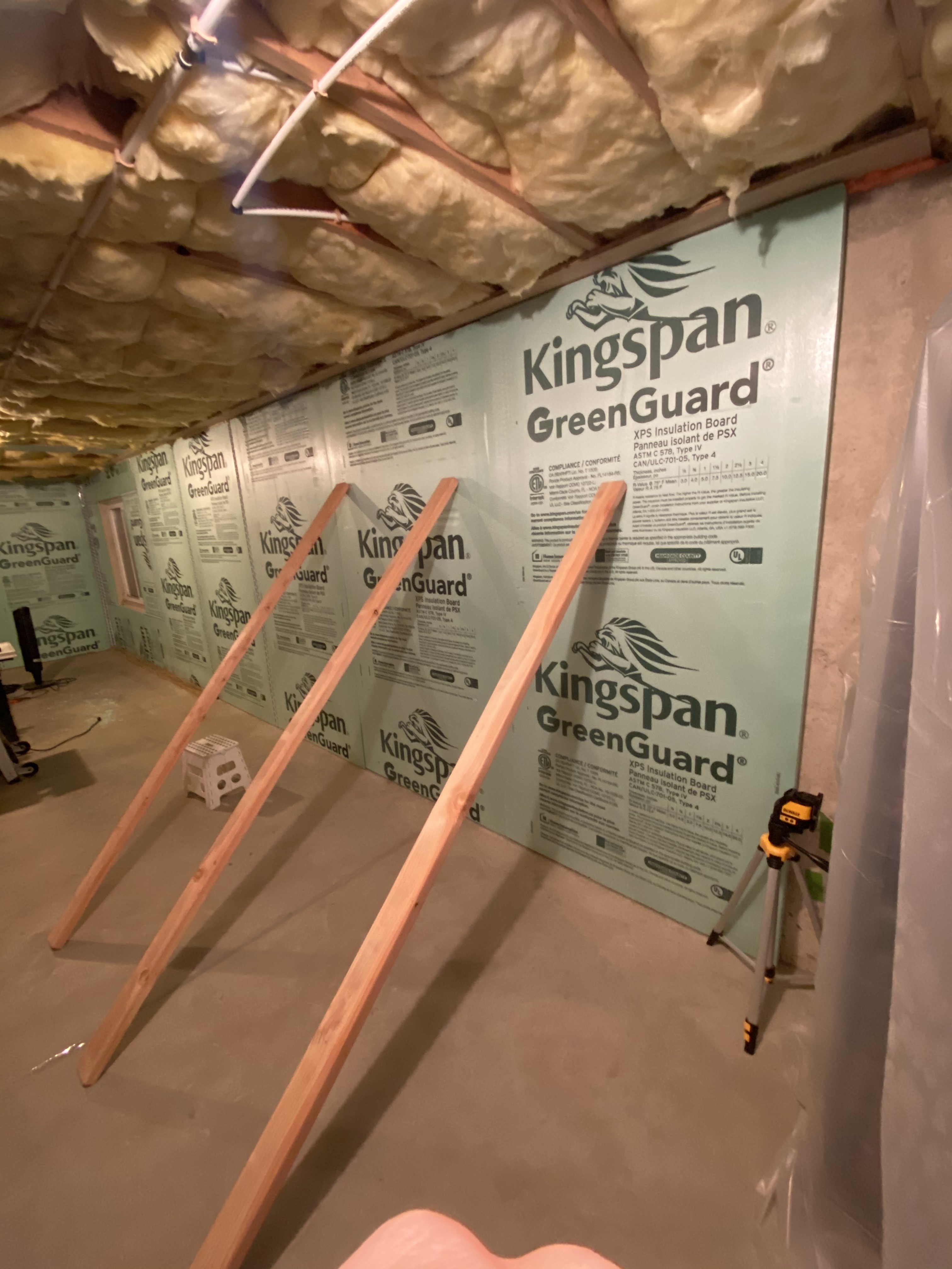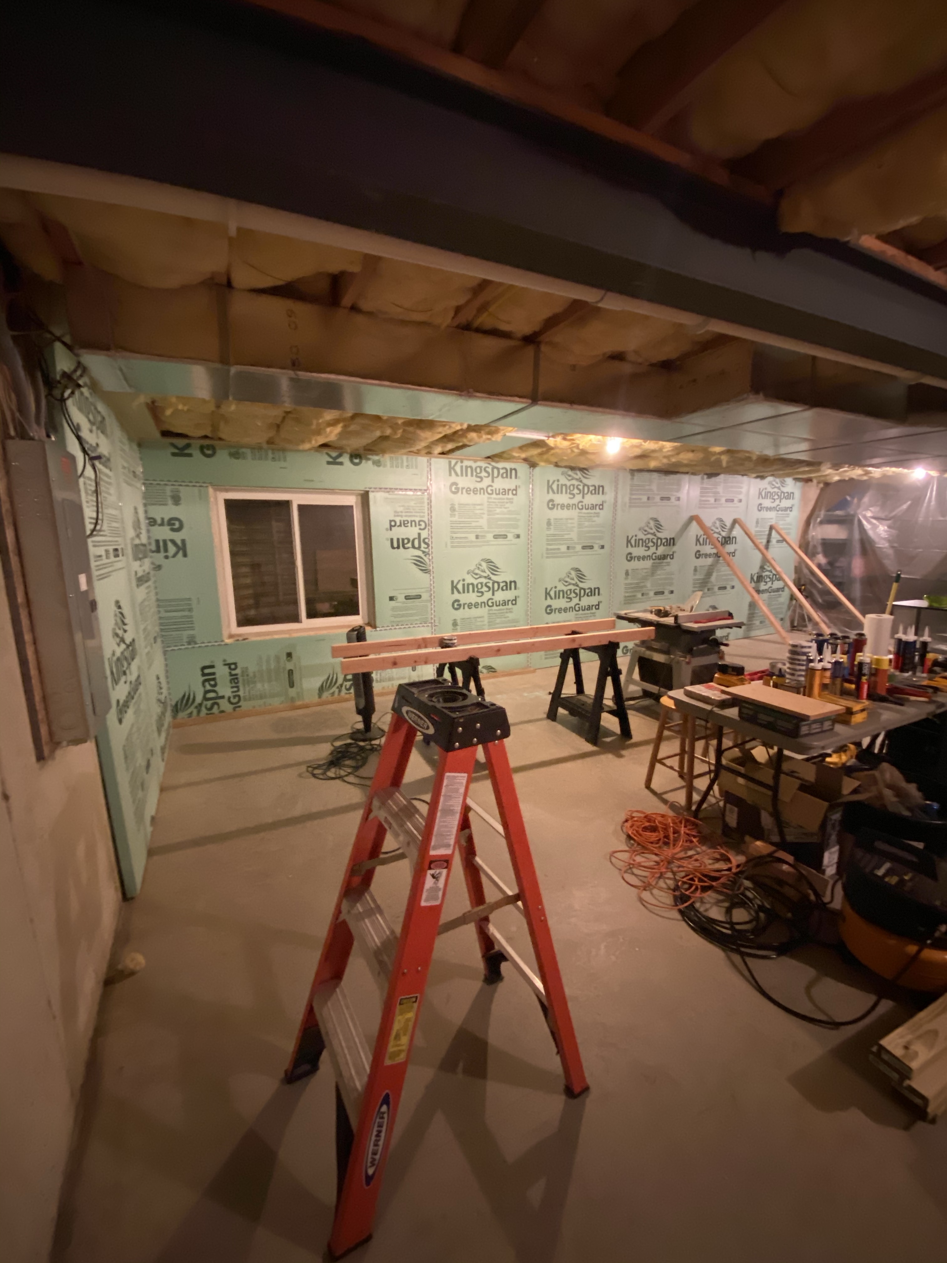Once I got home, the wife and I unloaded the truck (she’s such a trooper) and I finished the XPS on the back wall. I sealed the majority of the seams on that wall (except the bottom) and will come back to seal the rest once the last two boards cure.