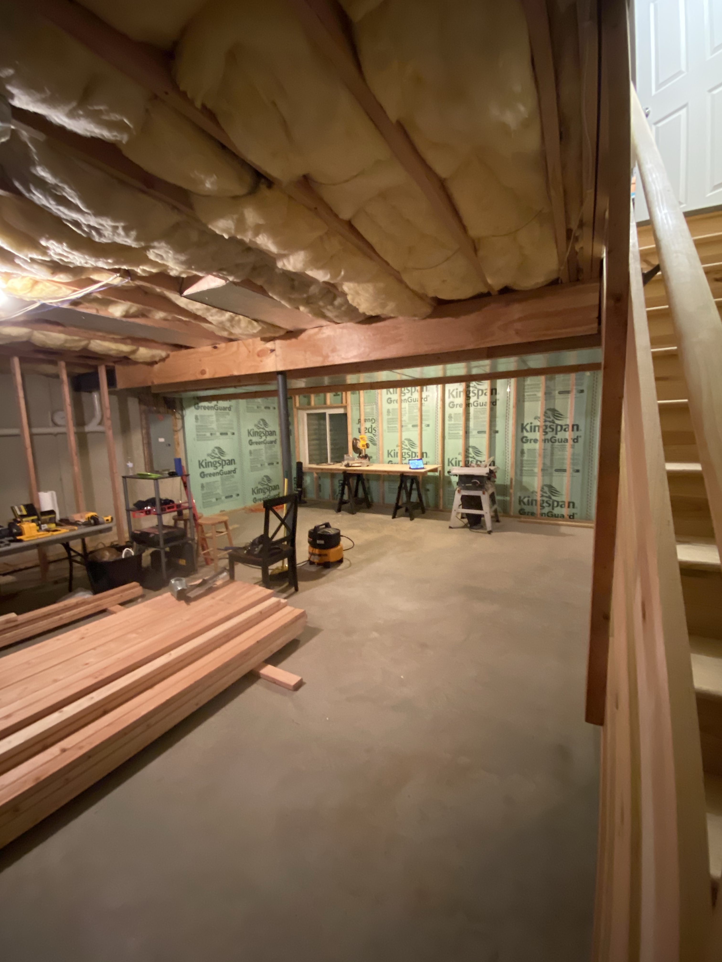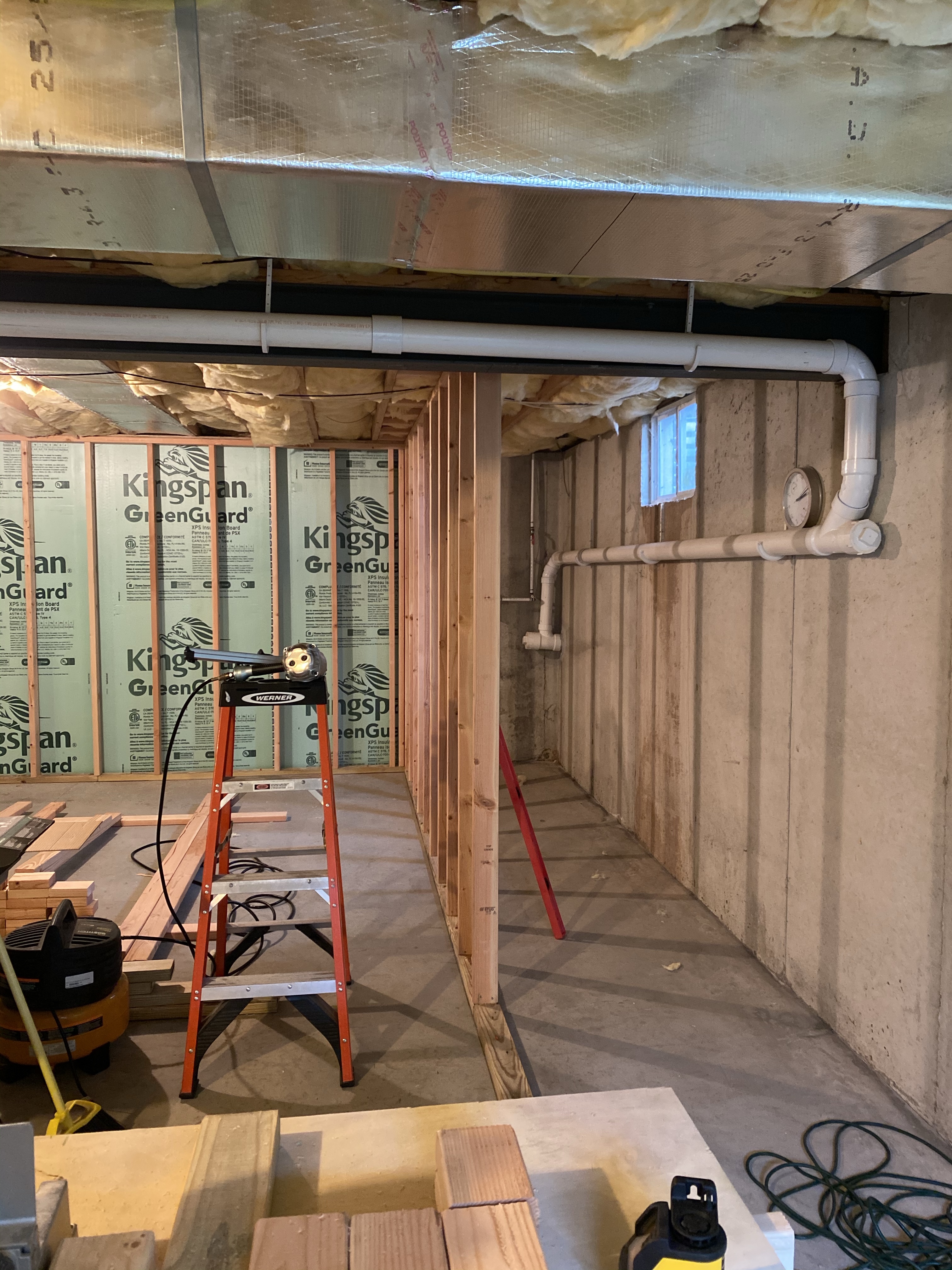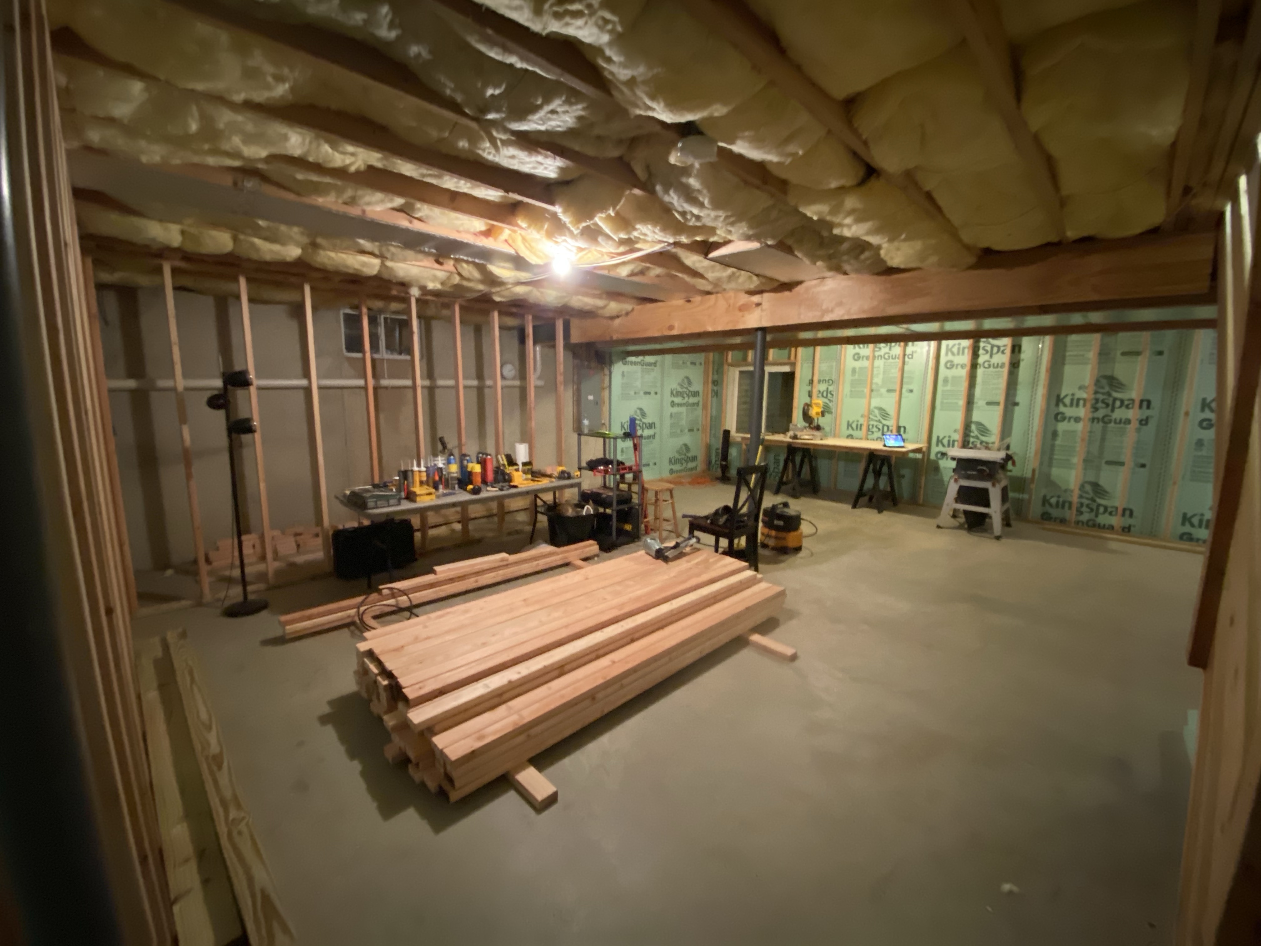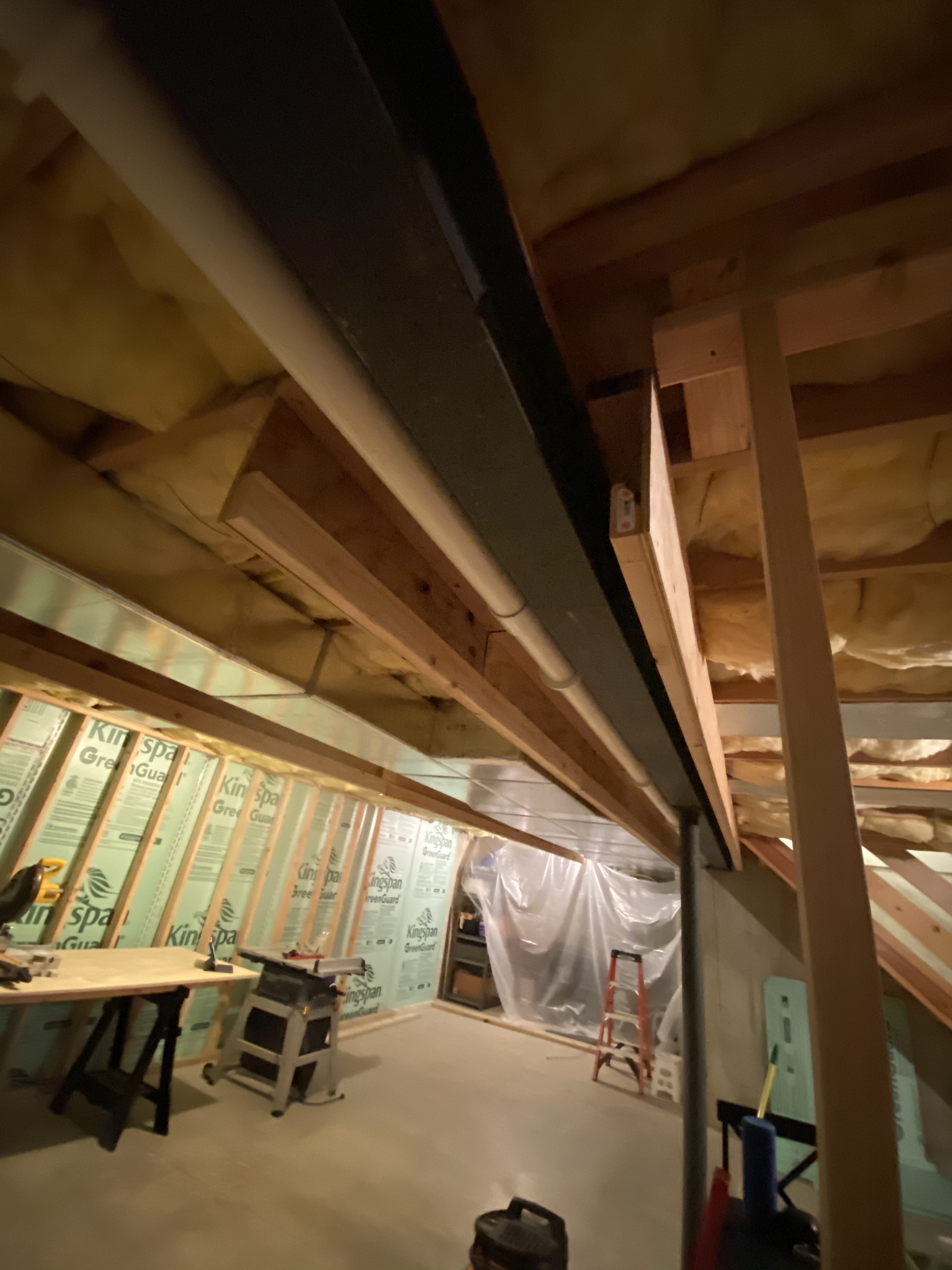 Next up, finish wall framing, then add the studs to connect the bulkhead and start planning the ceiling strapping.