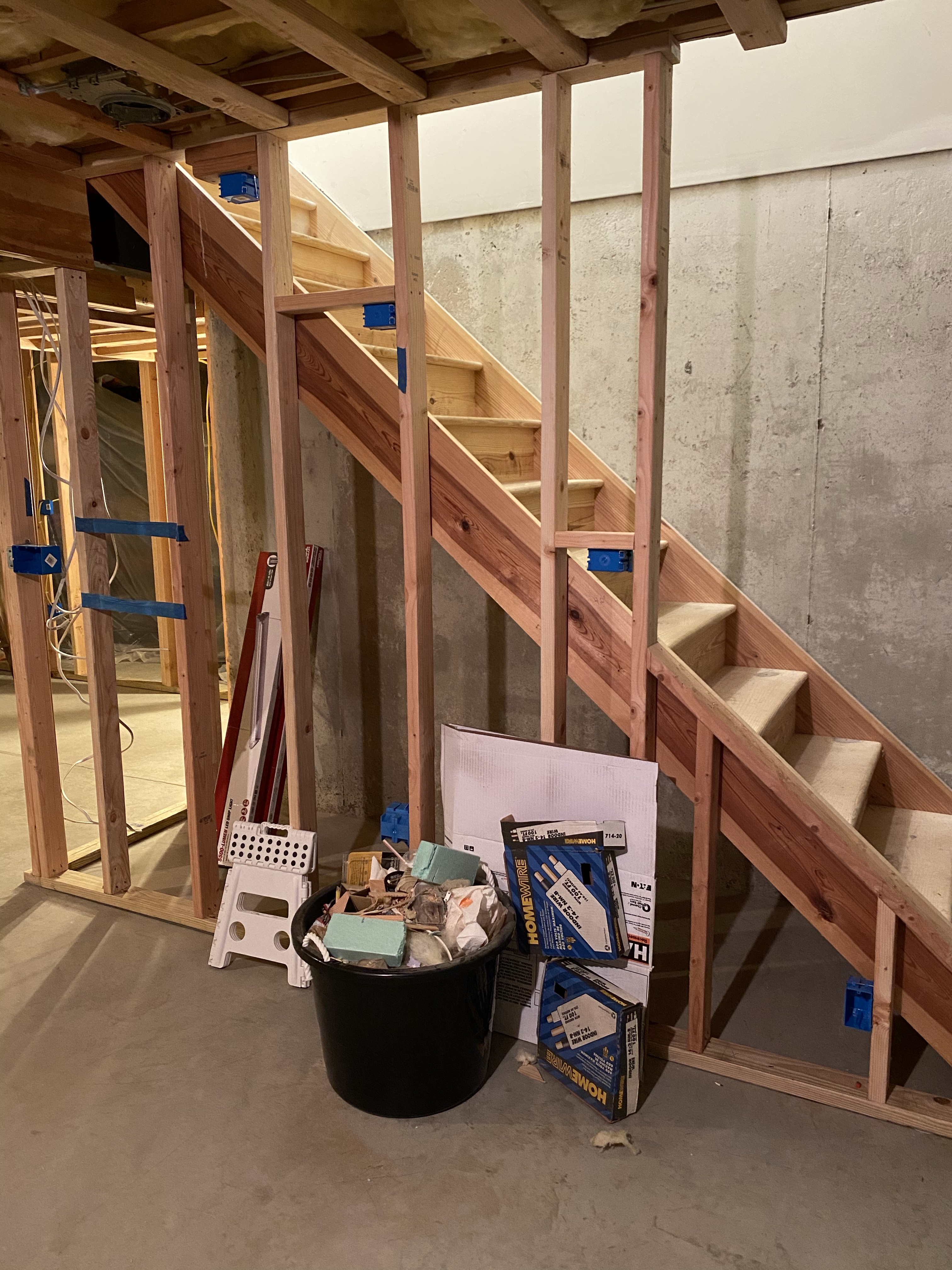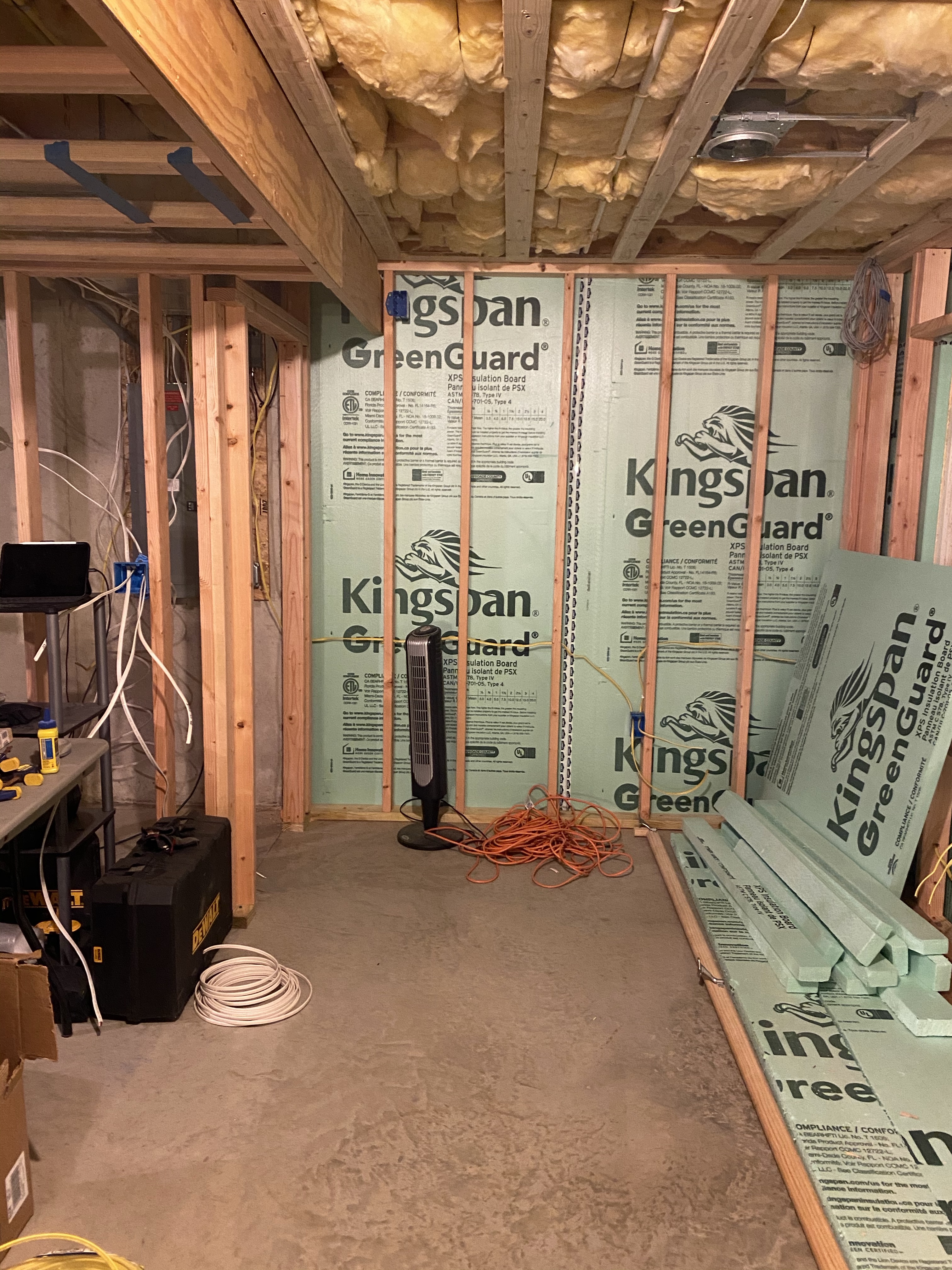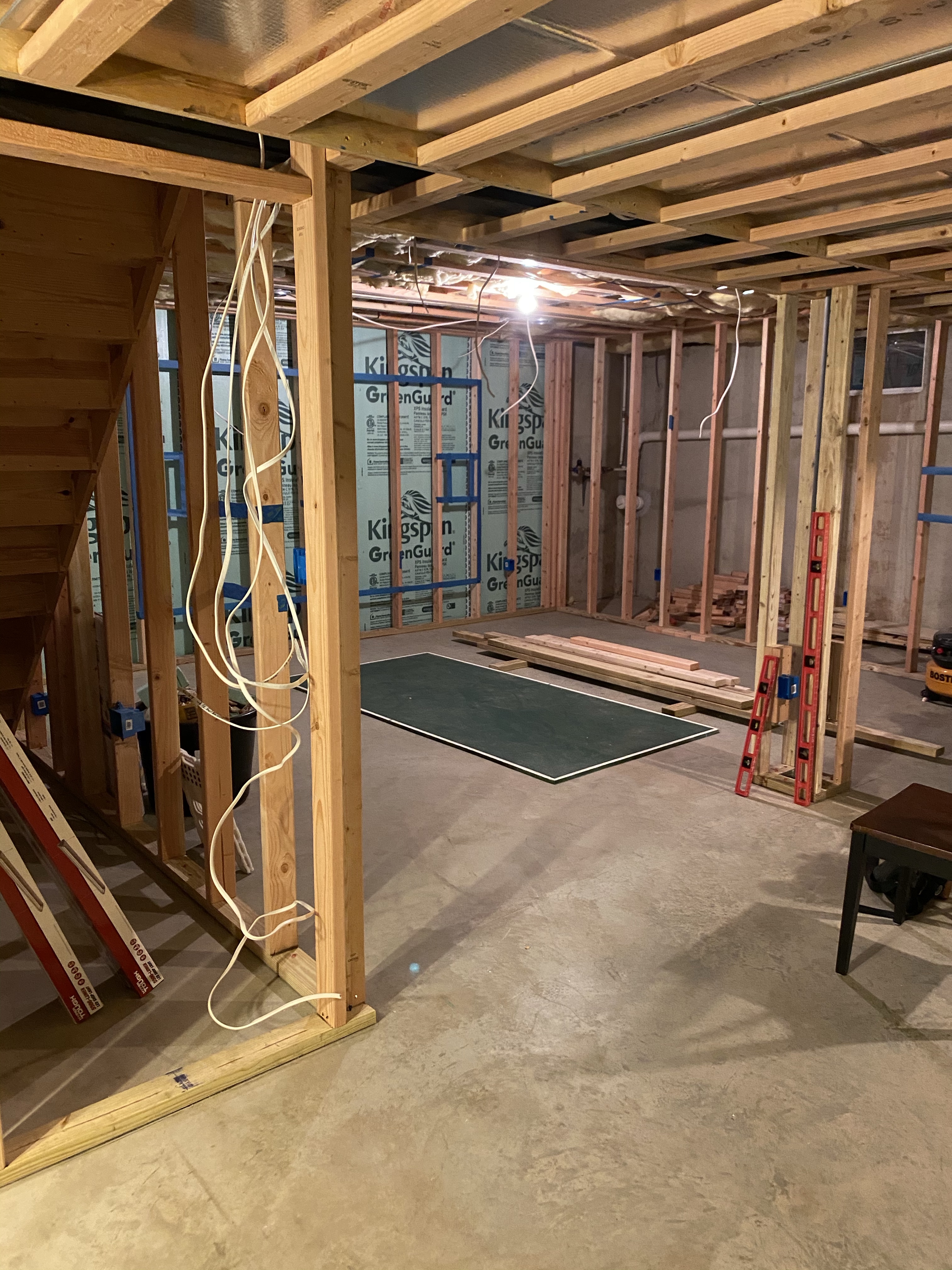 After taking yesterday off for some family events, my Dad came over to assist today. Though we got a LOT accomplished, it feels odd leaving the basement in such disarray. Actually, it’s not really in disarray, just looks like it.