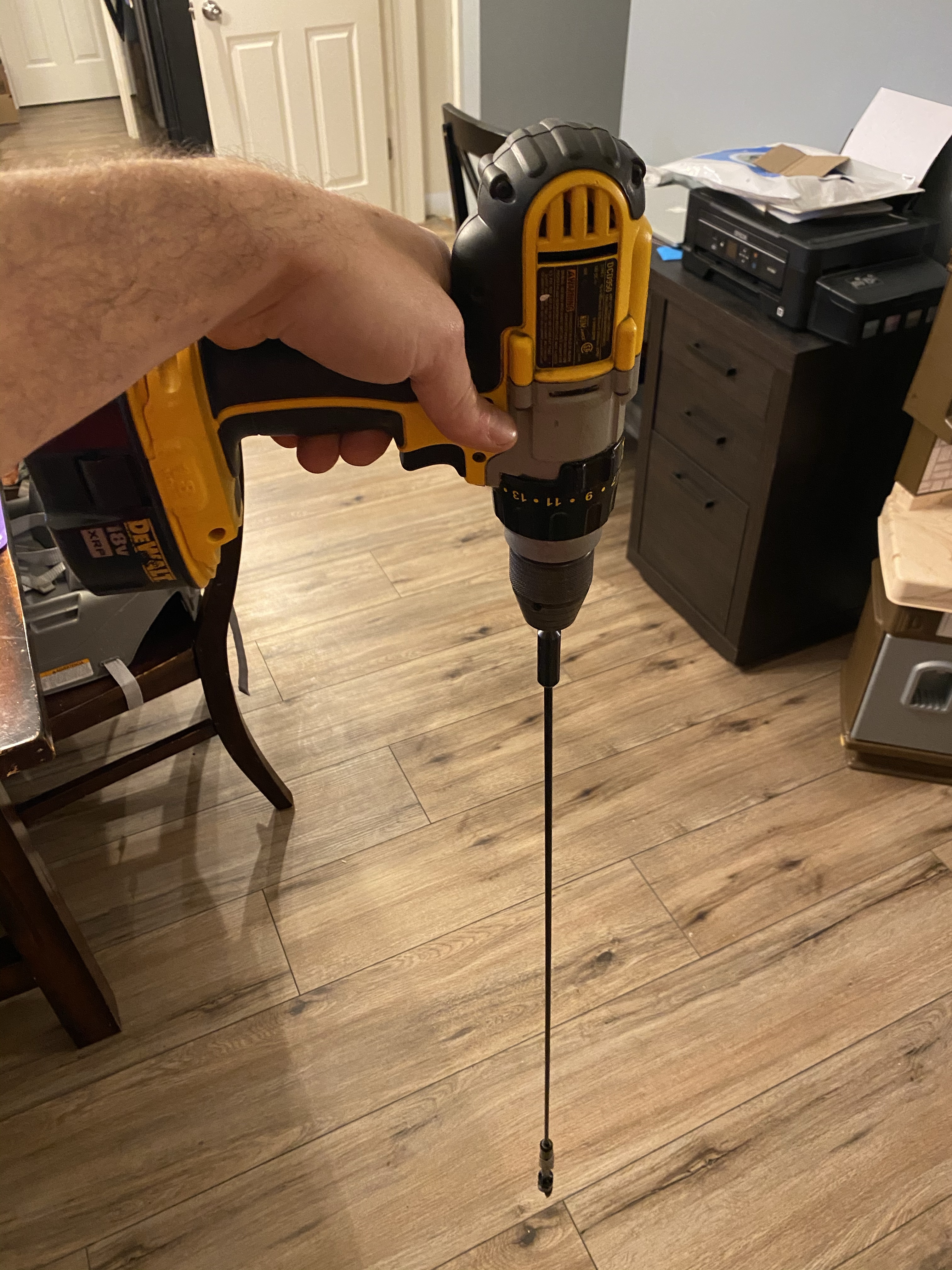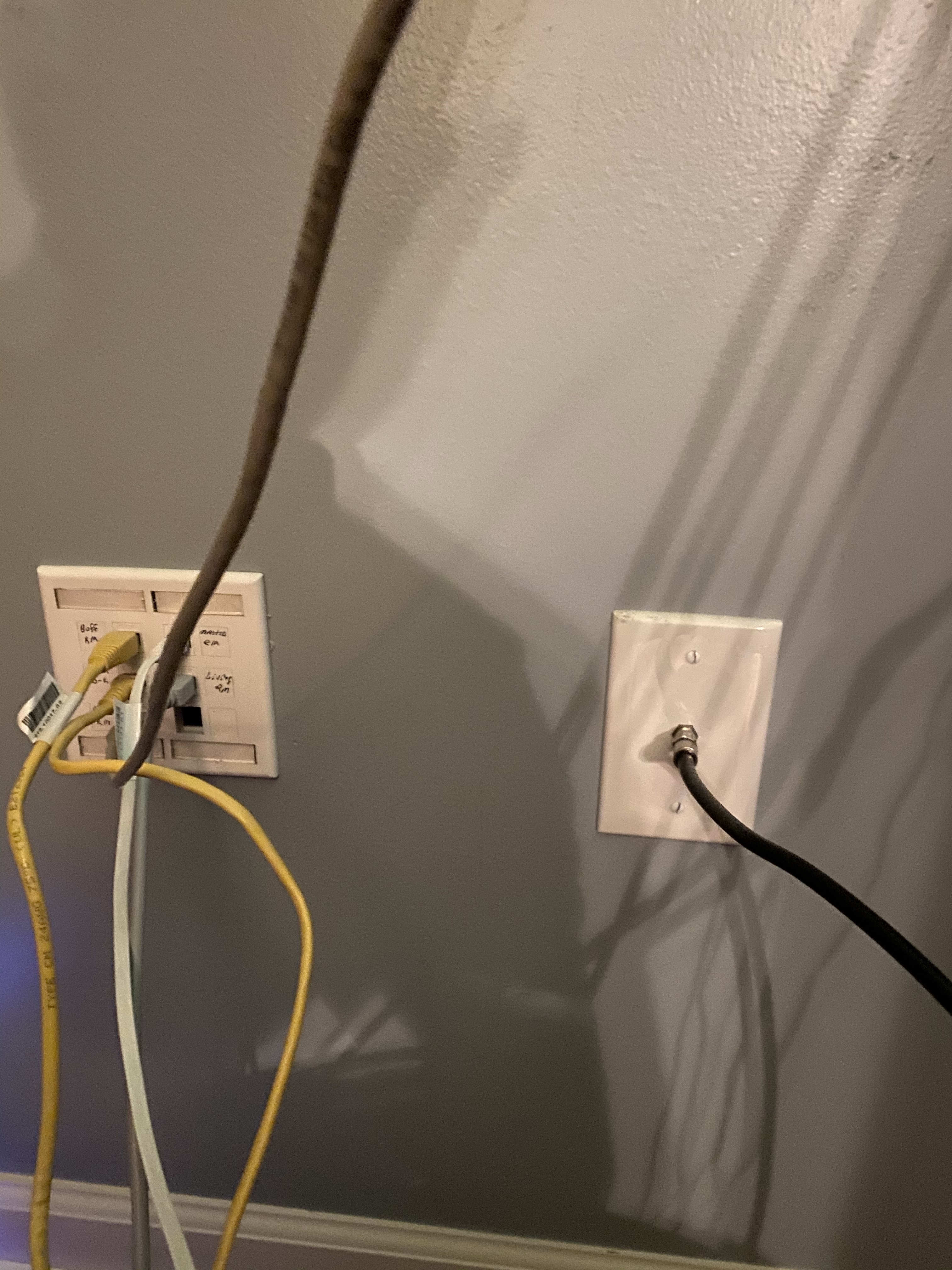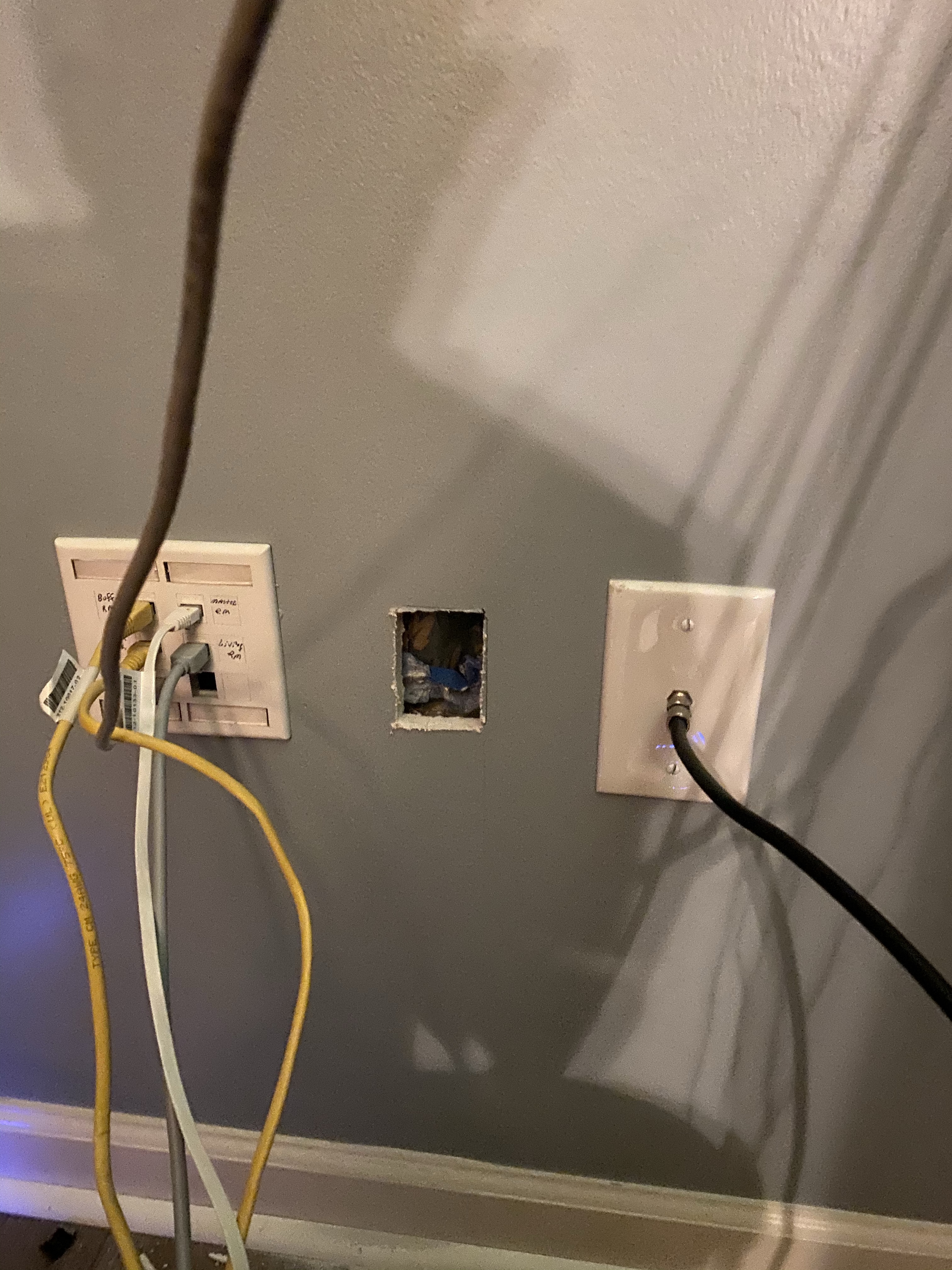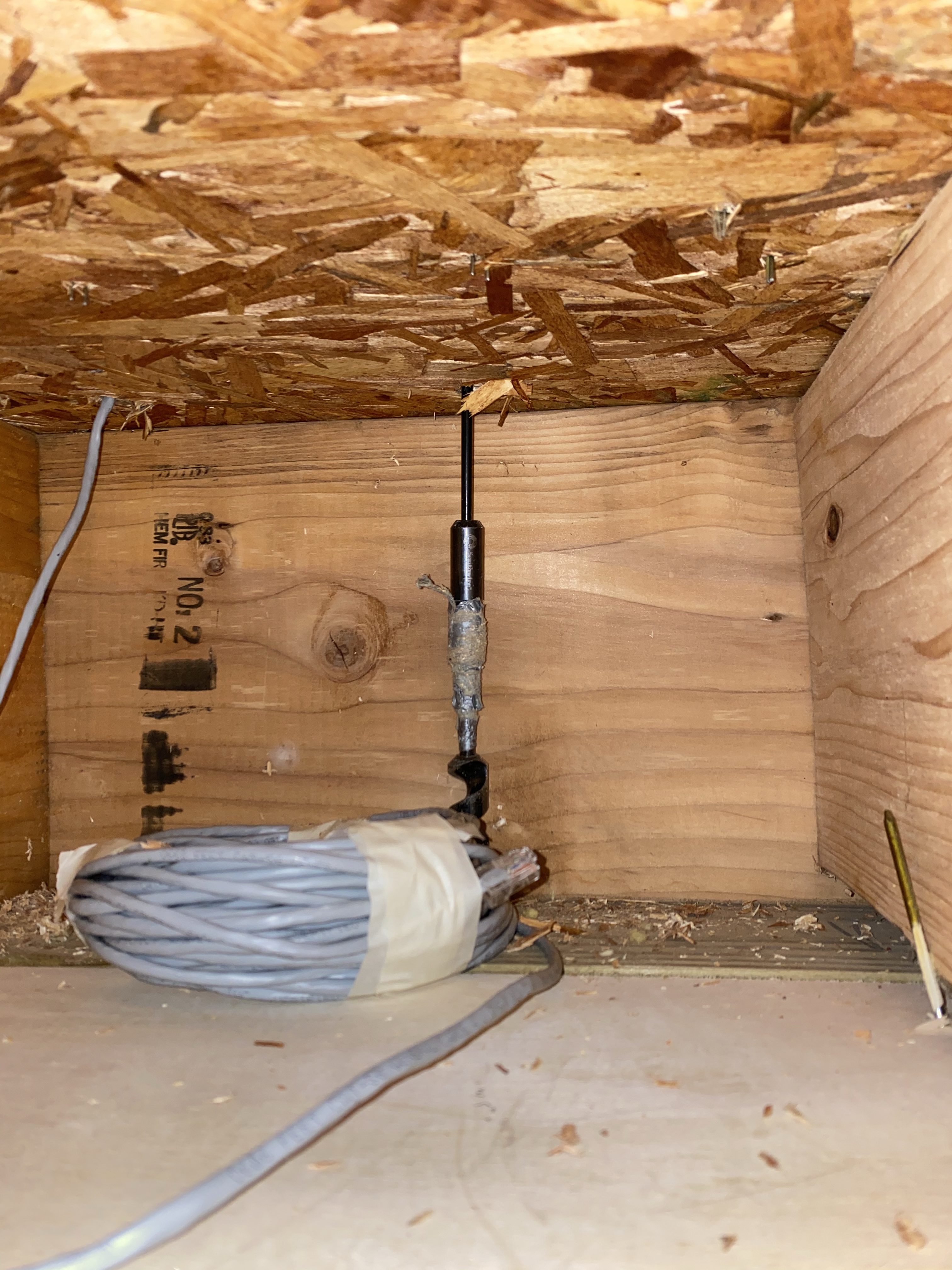 1. Installed a new home run to the router from the basement. There already was a CAT5E run down there from the main network plate beside the router but I figured I could upgrade it to CAT6 with the extra wire I had. Long story, one mistake and a long drill bit later…we have CAT6 to the basement.