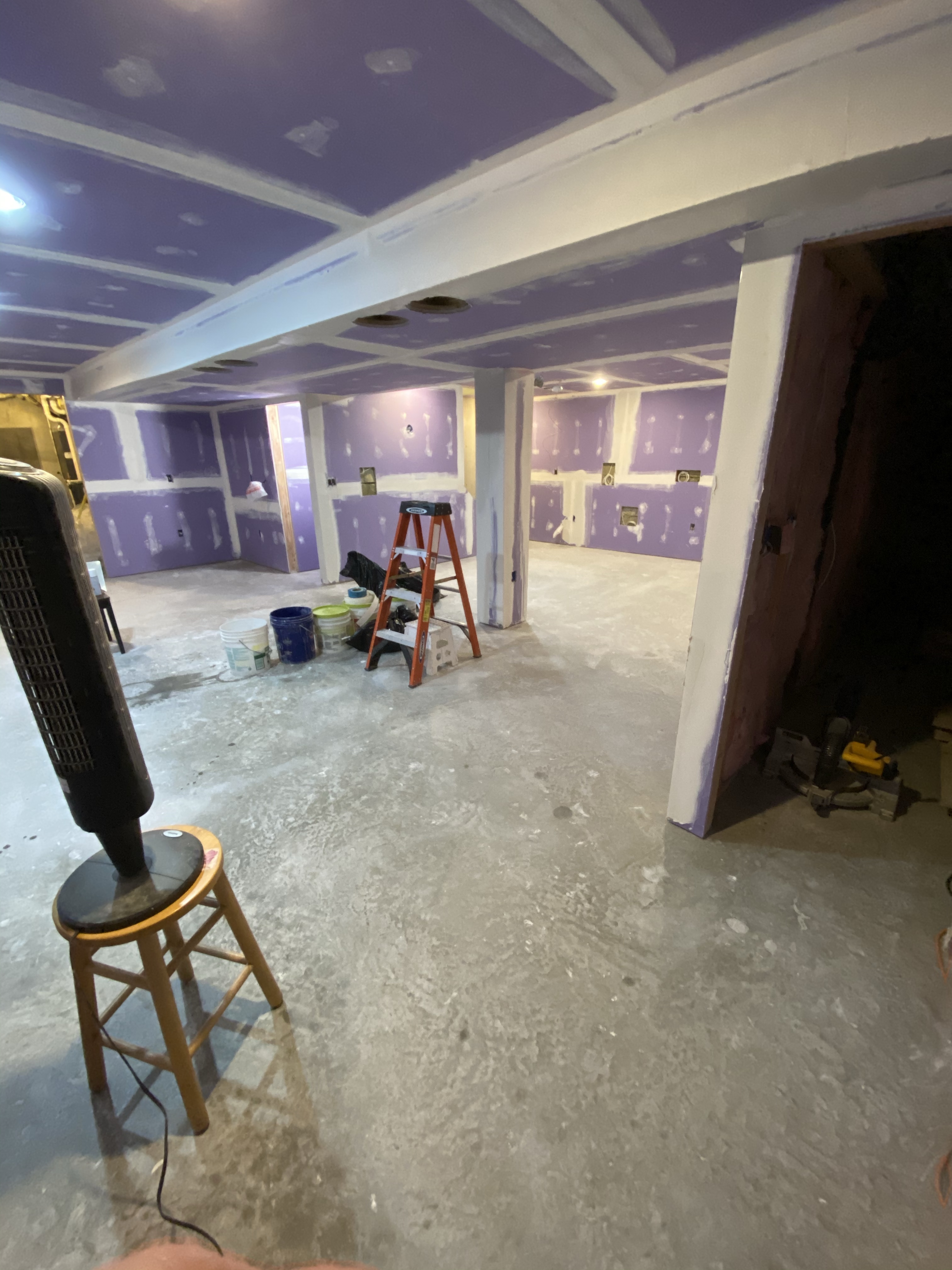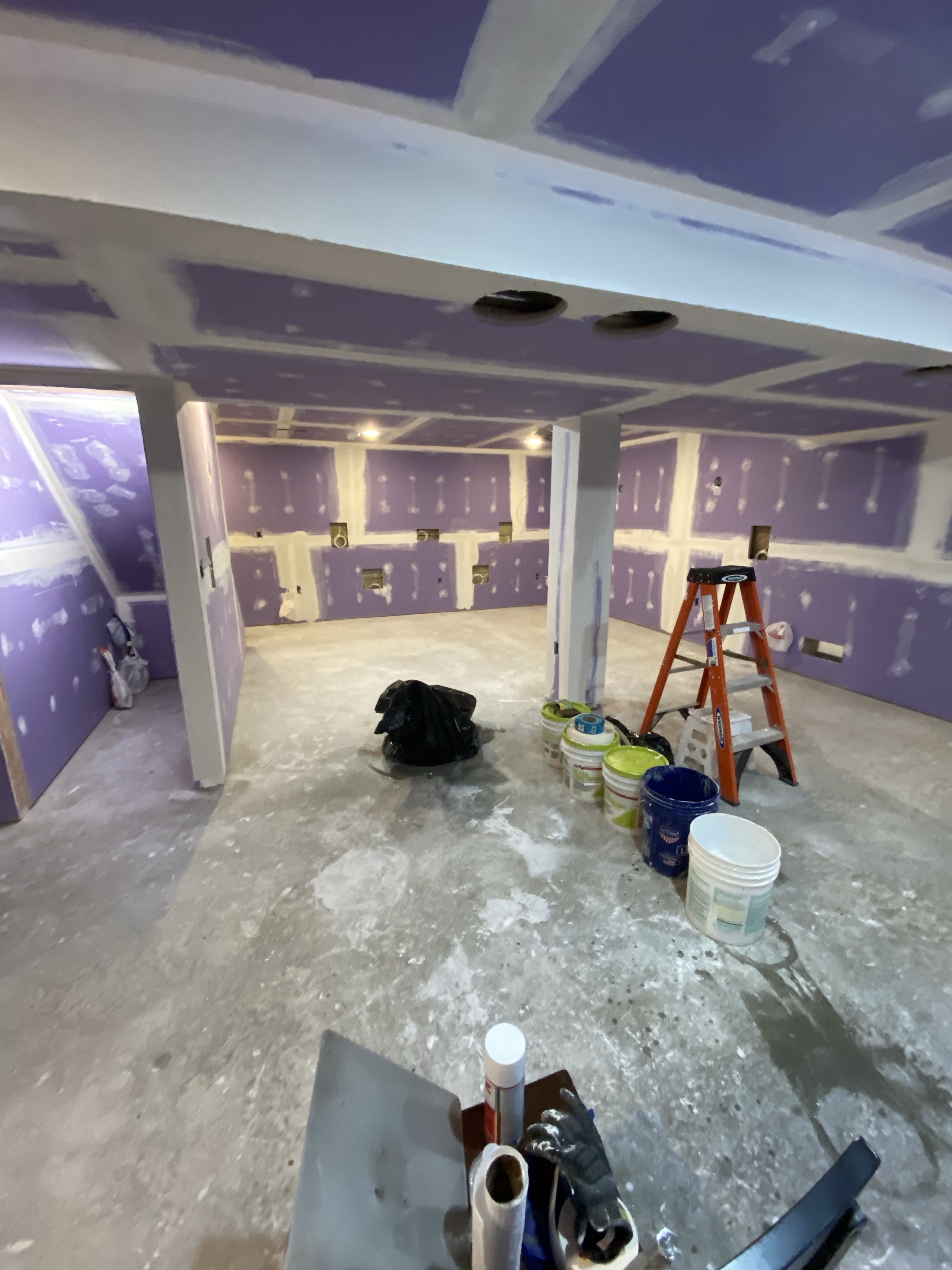 I applied some first, some second and some third coats today and it’s starting to come together. I’m certainly not the best drywall finisher but I guess it’s coming along. I’m thinking one more day then I’ll sand it down and see where we’re at.